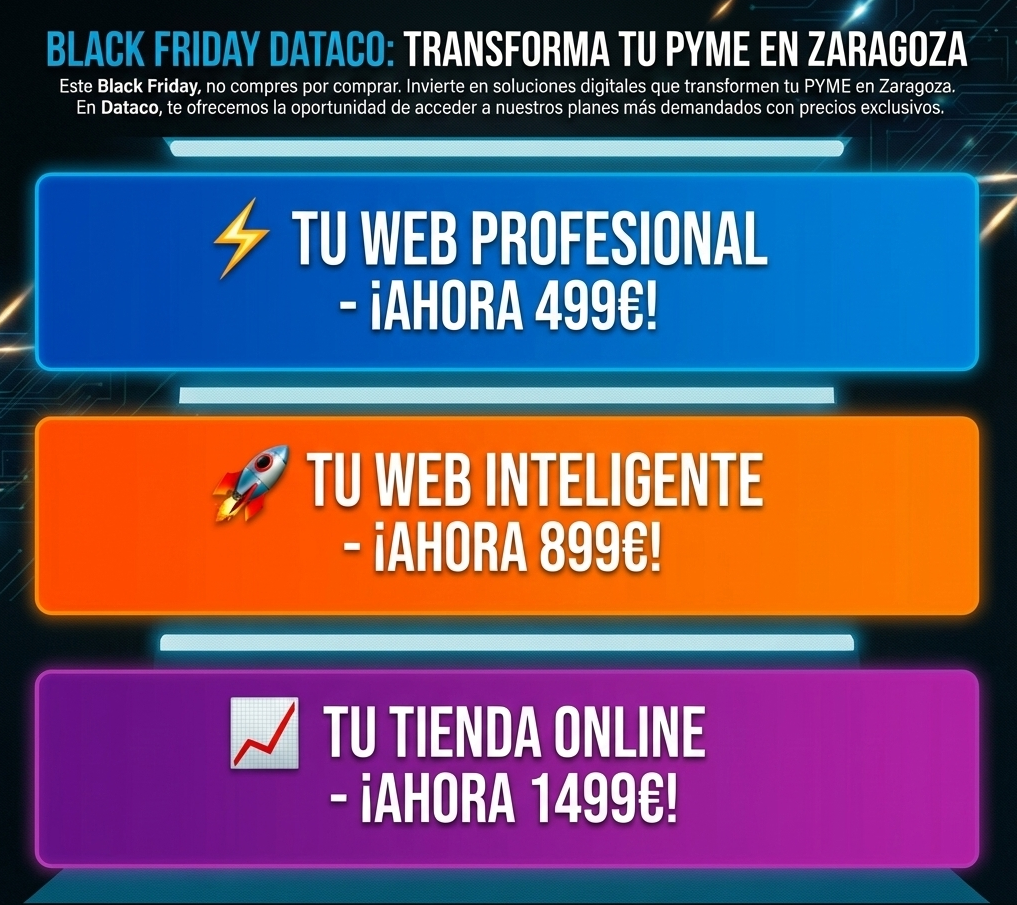 🔥 Oferta Black Friday: Válida solo hasta el 30 de Noviembre. 📍 Dataco: Consultoría Digital Cercana y Estratégica en Zaragoza.